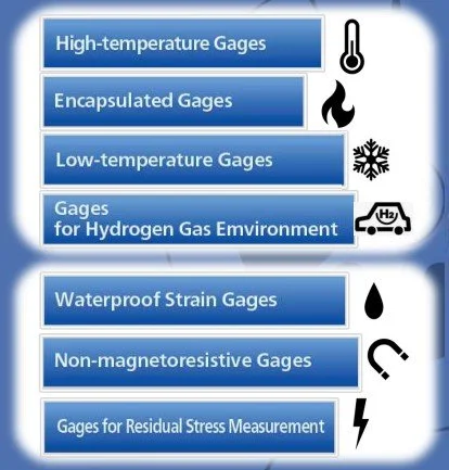 Kyowa har utöver KFGS serien en mängd befintliga modeller och utveklar dessutom löpande töjningsgivare utefter kundens behov.